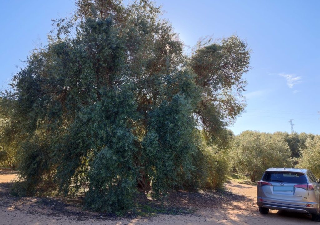 Las dimensiones son desproporcionadas aún para los que nacimos entre mares de olivos: tan alto como un edificio de cinco plantas, que precisaría de los brazos de toda una cuadrilla de aceituneros para perimetrarlo. Dicen que tiene la propiedad de dar a la vez cosechas de picual y de arbequina, aunque a mí las aceitunas dejadas para la rebusca me parecieron de cornezuelo. Dicen que hubo años que ella sola produjo tanto como una finca familiar. Y dicen que fue plantado hace muchos, cientos de años, por unos frailes mendicantes para sacar el aceite de los santos óleos.